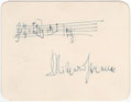 Richard Georg Strauss was a leading German composer of the late Romantic and early modern eras. He is known for his operas, which include “Der Rosenkavalier” and “Salome”. And his masterpiece - a quote from “Till Eulenspiegel's Merry Pranks”. Crisply penned autograph musical quotation signed “Dr Richard Strauss”. On an off-white 4.5 x 3.5 card, n.p., n.d., neatly signed in blue ink. Strauss pens two bars from the tone poem “Till Eulenspiegel’s lustige Streiche (Till Eulenspiegel's Merry Pranks)”. With mounting residue in all four corners on verso, else fine condition. Strauss premiered his witty “Till Eulenspiegel’s lustige Streiche” in 1895, described in the New Grove Dictionary as “a masterpiece on every level, as a programmatic description of the rogue's pranks in detail, as a generalized portrait of a scamp, or as an example of musical humour”.