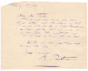 French Neo-Impressionist painter who, working with Georges Seurat, helped develop the Pointillist style. Autograph letter signed "P. Signac". 1 page, 5.5 x 8.5 inch, Port en Bessin (Calvados), June 23., no year, stationery of the Société des Artistes indépendants, a fine handwritten letter very likely to Claude Monet. In French, about the delivery of a painting in deposit: „Je suis en voyage et absent de Paris pour plusieurs mois. Vous pourrez présenter le tableau dont vous me parlez à M. Jean Metthey, 16 Rue de l'Assomption.” Translated: “I am on a trip and absent from Paris for several months. You will be able to present the painting of which you speak to me to Mr. Jean Metthey, 16 Rue de l'Assomption…” Mailing fold, ink stain, handling wear, else good condition and fine for display.