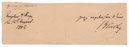 German businessman and a pioneer of field archaeology. He was an advocate of the historical reality of places mentioned in the works of Homer. Schliemann was an archaeological excavator of Hissarlik, now presumed to be the site of Troy. Autograph postcard signed “HSchliemann”. Postcard, 4.75 x 3.0 inch, London, 1886 July 1. Addressed in Schliemann’s hand to Julius Ruhm in Berlin. In Germn, in full: “In Beantwortung Ihres Schreibens vom 28 v Mts. werde ich nicht vor Ende Juli nach Berlin kommen. Meine Adresse bis dahin ist care of Messrs John Henry Schröder & Co London.” Translated: “In reply to your letter of March 28, I will not be coming to Berlin before the end of July. My address until then is care of Messrs. John Henry Schröder & Co., London”. Slightly discolored, handling wear, else good condition. In the mid-1840s, Schliemann worked as an accountant and correspondent in the banking and trading house Gebrüder Schröder & Co. in Hamburg and St. Petersburg.