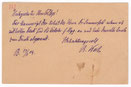 German physician, pioneering microbiologist and the founder of modern bacteriology. Nobel Prize in Physiology or Medicine in 1905. Autograph postcard signed “R. Koch”. Postcard, 5.5 x 3.5 inch, Berlin, 1904 November 17. Addressed in Koch’s hand to the pediatrician Adolf Baginsky (1843-1918), since 1890 director of the Kaiser- and Kaiserin-Friedrich-Children's-Hospital in Berlin, which he founded together with Rudolf Virchow. In German, in full: “Das Manuscript der Arbeit des Herrn Dr Sommerfeld nehme ich mit bestem Dank für die Zeitschr(ift) f(ür) Hyg(iene und Infectionskrankheiten) an und habe dasselbe bereits zum Druck abgesandt.“ Translated: “I accept the manuscript of Dr. Sommerfeld's work with my sincere thanks for the Journal of Hygienism and Infectious Diseases and have already sent it off for printing." Handling wear, minor creases and stains, else good condition. The article “On formalin milk and the behavior of formalin towards some bacterial species” by Paul Sommerfeld appeared in 1905 in volume 50 of the journal published by Koch.